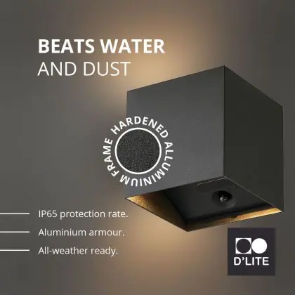 Beschreibung D'Lite Wandleuchte Elingen Aluminium Schwarz Up & Down 2.9W 170lm - 830 Warmweiß | IP65 - Batteriebetrieben - Lichtsensor