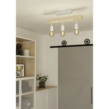 Eglo Deckenleuchte Townshend Stahl Weiß Holz | IP20 - Geeignet für 3x E27
