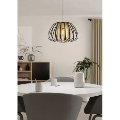 Die Eglo Pendelleuchte Encinitos Schwarz, Gold | Geeignet für E27 sorgt für eine angenehme Ausleuchtung und punktet durch modernes Design. Diese Leuchte ist speziell zur Montage an der Decke vorgesehen.