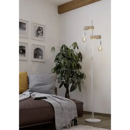 Beschreibung Eglo Stehlampe Townshend Stahl Weiß Holz | IP20 - Geeignet für 2x E27
