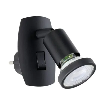 Beschreibung Eglo Wandleuchte Parrini Lamp mit Stecker Schwarz 4.5W 345lm - 830 Warmweiß | IP20 - Inkl. 1x GU10