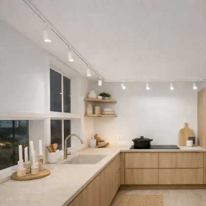 Der LED-Schienenstrahler kommt mit der Farbtemperatur daher. Als Faustregel gilt: Je niedriger der Kelvinwert, desto gemütlicher wirkt das Licht.
