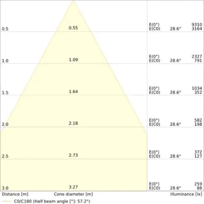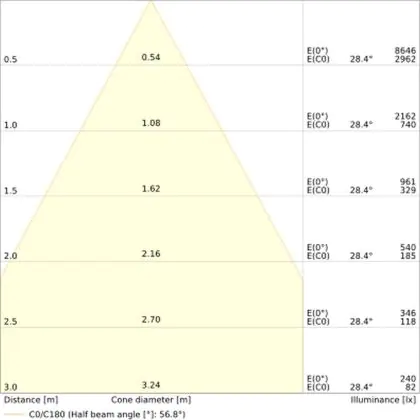 Der LED-Deckenspot kommt mit der Farbtemperatur 3000K - Warmweiß daher. Als Faustregel gilt: Je niedriger der Kelvinwert, desto gemütlicher wirkt das Licht.