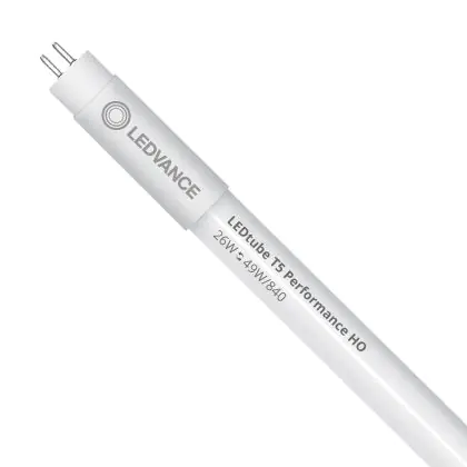 Die Ledvance LED Röhre T5 Performance (Mains AC) High Output 26W 4000lm - 840 Kaltweiß | 145cm - Ersatz für 49W ist eine effiziente LED-Röhre und der perfekte Ersatz für Ihre konventionelle Leuchtstoffröhre mit 49W und einem G5. Die Röhre hat eine Länge von 1449 mm und einen Durchmesser von 19 mm. Zudem strahlt das Produkt Licht in der Farbtemperatur 4000K - Kaltweiß aus und punktet durch eine lange Lebensdauer.