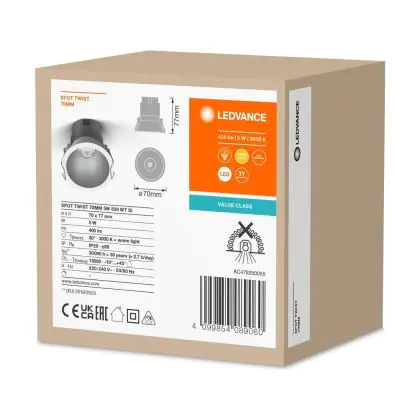 Wir von BeleuchtungDirekt haben mit dem LED-Einbauspot von Ledvance gute Erfahrungen gemacht. Daher bieten wir Ihnen für dieses Produkt eine Garantie von 3 Jahre an.