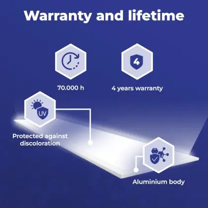 Wir von BeleuchtungDirekt haben mit dem LED-Panel von Noxion gute Erfahrungen gemacht. Daher bieten wir Ihnen für dieses Produkt eine Garantie von 4 Jahre an.