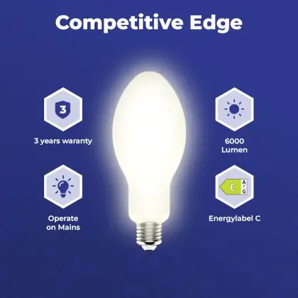 Aufgrund des geringen Energieverbrauchs von nur 36W sparen Sie mit der LED-Lampe von Noxion bis zu 90 % Ihrer Energie - sowie Instandhaltungskosten gegenüber einem konventionellen Modell.