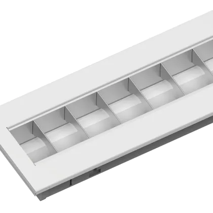 Das Noxion LED Louvre Excell G2. ist ein modernes LED-Panel mit einem besonders geringen Blendwert von < 19. So profitieren Sie von einer blendfreien Lichtlösung für Ihr Büro mit den Maßen 15 x 150 cm. Die Kombination aus Lamellenrastern und mattem Reflektoren bietet ein gleichmäßiges und angenehmes Licht. Aufgrund des ebenfalls niedrigen Energieverbrauchs sparen Sie rund 25 % Ihrer Stromkosten ein, sodass eine schnelle Amortisation erreicht wird.