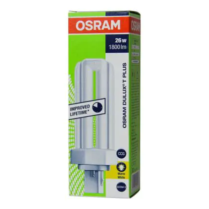 Die Osram Dulux T Plus 26W - 830 Warmweiß | 2-Pins ist eine Kompaktleuchtstofflampe von Osram. Das Produkt mit 2 Pins strahlt Licht in der Farbtemperatur 3000K - Warmweiß aus und punktet durch eine lange Lebensdauer.
