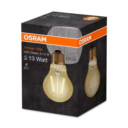 Die Osram Vintage 1906 LED ist eine LED-Lampe im Retro-Design. Sie hat einen geringen Energieverbrauch, eine lange Lebensdauer und zudem einen ansprechenden Look dank ihrer Filamente. Zudem spendet Licht in der Farbtemperatur extra Warmweiß.
