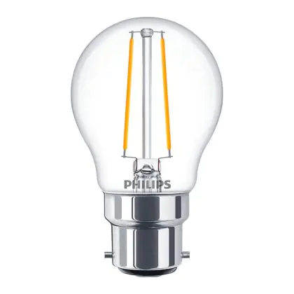 Die Philips Classic LEDlustre B22 P45 5W 827 Klar | Extra Warmweiß - Dimmbar ist eine besonders effiziente B22 LED-Lampe. Die Filamentlampe ist nicht nur optisch ein schönes Highlight, sondern überzeugt auch mit hochwertiger LED-Technik und einem extrem geringen Energieverbrauch. Weiterhin ist die LED-Lampe dimmbar.