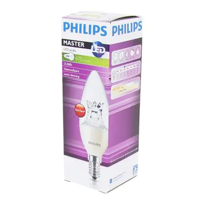 Die Philips LEDcandle E14 ist eine moderne LED-Lampe mit Kerzenform. Dank innovativer LED-Technik ist sie besonders energieeffizient und ermöglicht Energieeinsparungen von bis zu 85%. Darüber hinaus ist sie über die DimTone-Funktion dimmbar und kann in ihrer Farbtemperatur auf einer Skala von 2.200 bis 2.700 K verändert werden. Der gängige E14-Sockel erleichtert zudem den Austausch von herkömmlichen Leuchtmitteln.