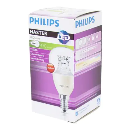 Die Philips MASTER LED Lustre E14 Kugel Krone Klar 5.5W 470lm - 822-827 Dim to Warm | Dimmbar - Ersatz für 40W ist eine effiziente E14 LED-Lampe und der perfekte Ersatz für Ihre konventionellen 40W Lampen mit E14-Sockel. Zudem strahlt sie Licht in der Farbtemperatur 2200K - 2700K Dim To Warm aus und punktet durch eine lange Lebensdauer.
