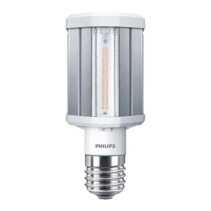 Die Philips TrueForce LED HPL E40 42W 840 Clear strahlt als Außenbeleuchtung mit 360° Abstrahlwinkel ein kaltweißes Licht aus. Die Lichtfarbe hat 4.000 Kelvin und damit einen erhöhten Blauanteil. Das schafft eine neutrale Atmosphäre mit hohem Sehkomfort.