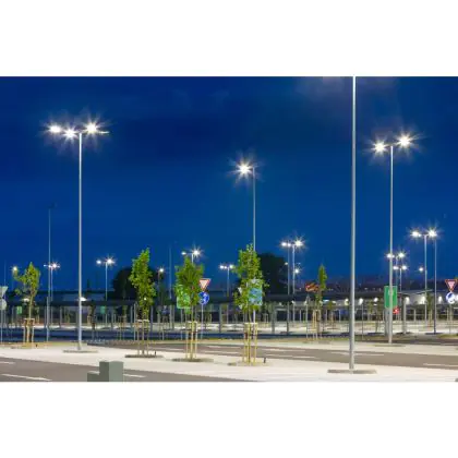 Mit ihrem hohen Lichtstrom von 10.000 Lumen bei einem Verbrauch von nur 81 W erreicht die Zephyr Large eine hervorragende Lichtausbeute von gut 123 lm/W – ideal für großflächige Anwendungen im Außenbereich.