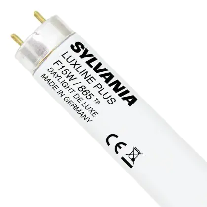 Die Sylvania T8 Luxline Plus F15W 865 überzeugt mit einem geringen Energieverbrauch von nur 15 Watt und mit einer tageslichtweißen Farbtemperatur.