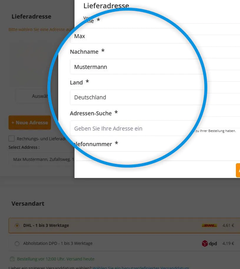 Beim Bezahlen können Sie einen neutralen Lieferschein anfordern, um die volle Kontrolle über den Lieferort Ihrer Bestellung zu behalten. Gehen Sie dazu einfach wie folgt vor: